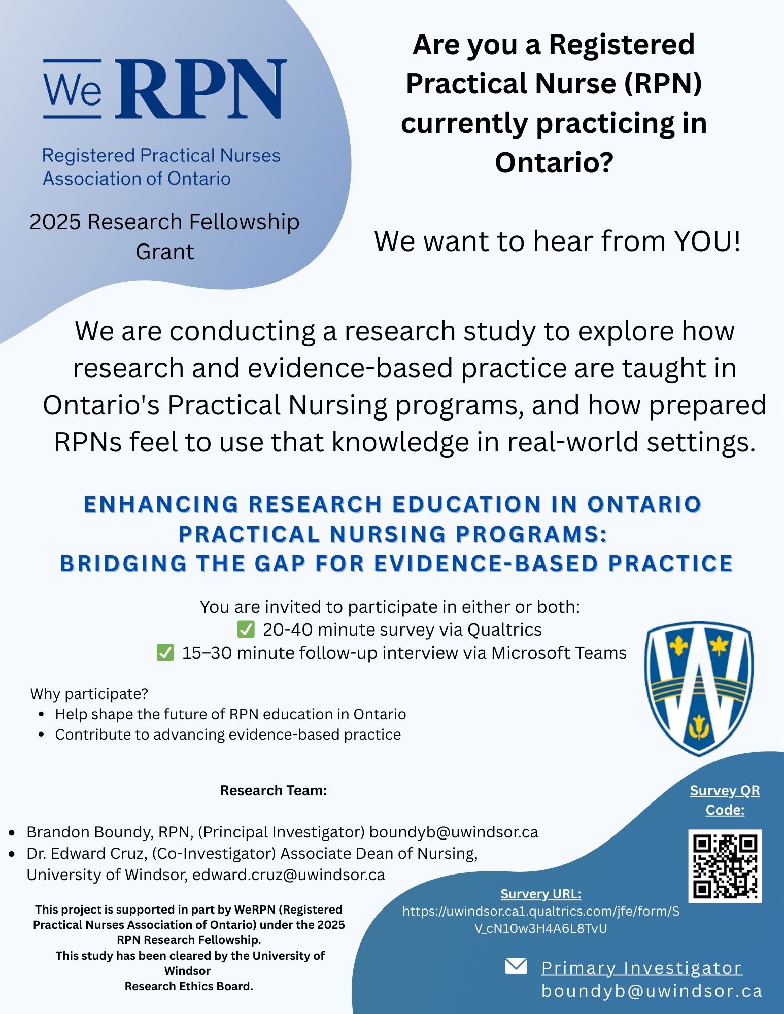 WeRPN is committed to supporting RPN-focused and inclusive research that aligns with our strategic plan and research priorities. Each project undergoes a review by the Research Advisory Council (RAC). The RAC approval process ensures quality, relevance, and collaboration with RPNs. Researchers are notified by email of the final decision.